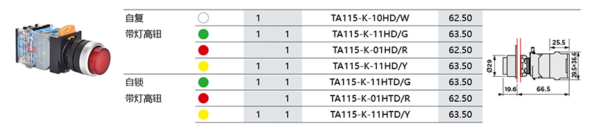 K系列弹簧复位带灯高钮
