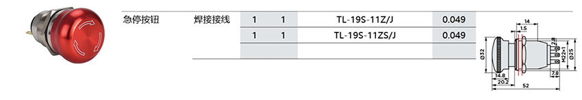 TL金属急停旋钮Φ19mm