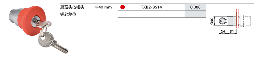 TXB2弹簧复位蘑菇头按钮头-钥匙复位